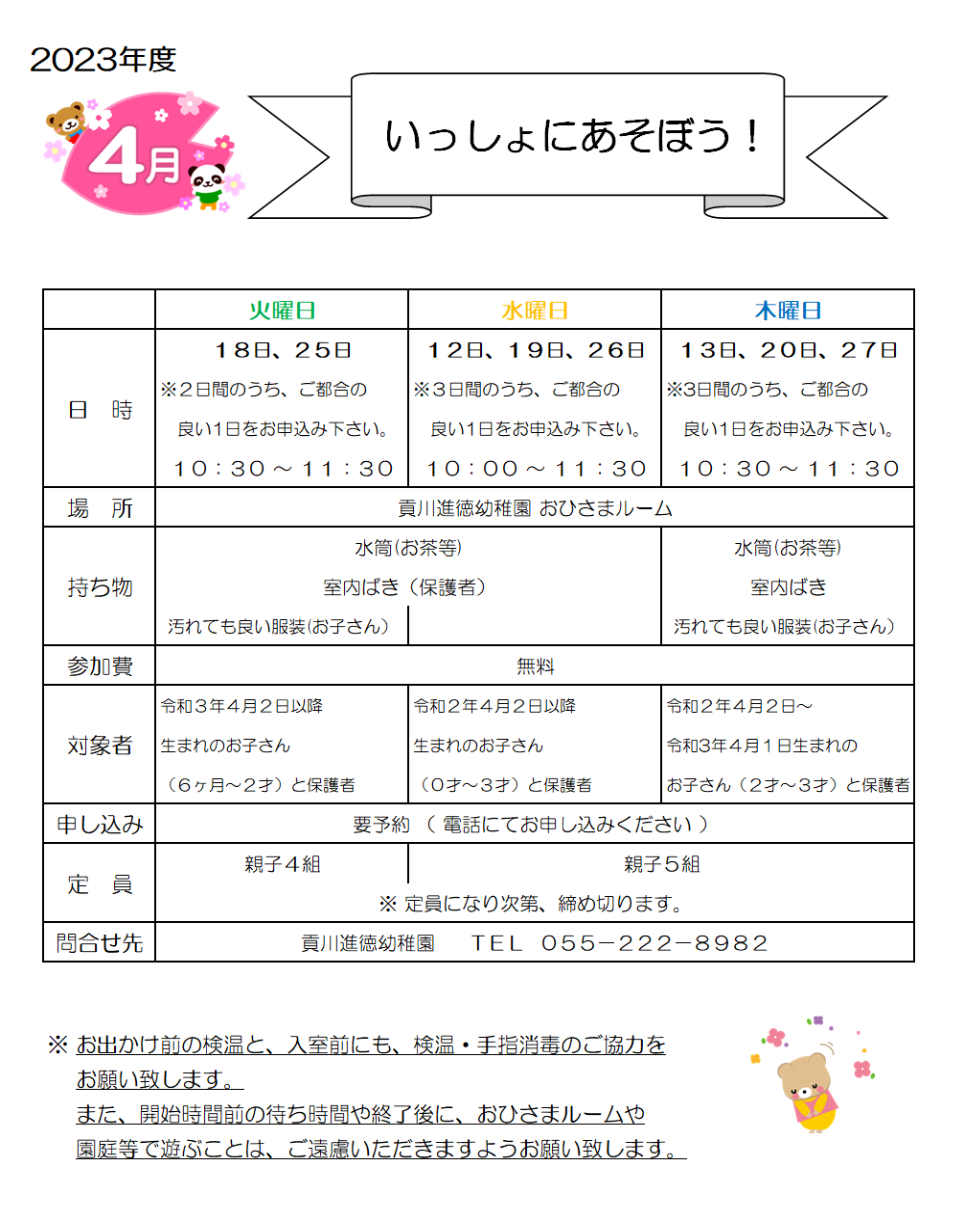 未就園のお子さまと保護者のみなさま、幼稚園で一緒にあそびましょう♪