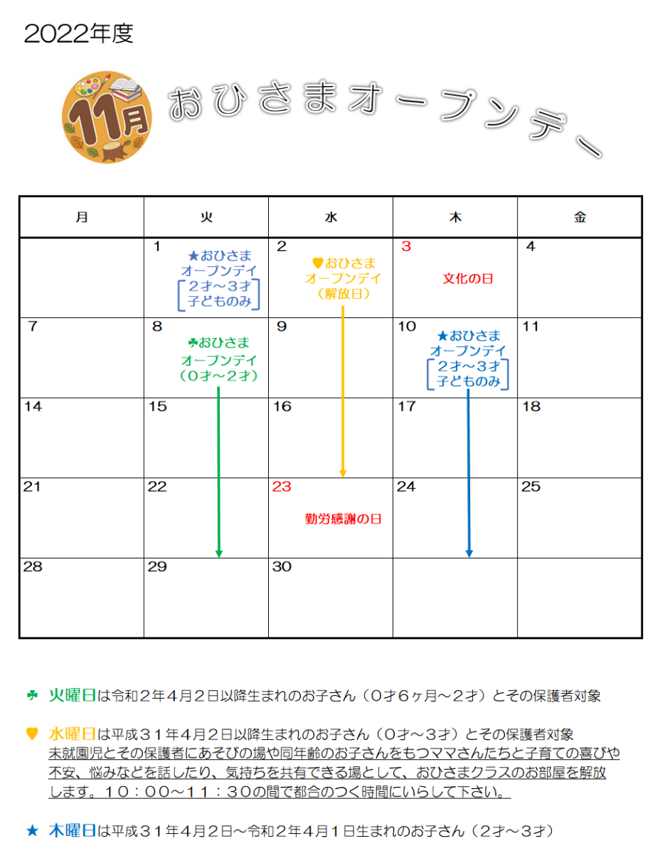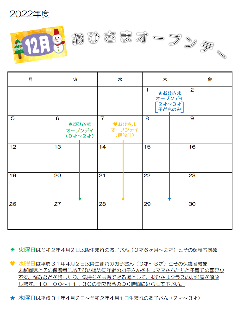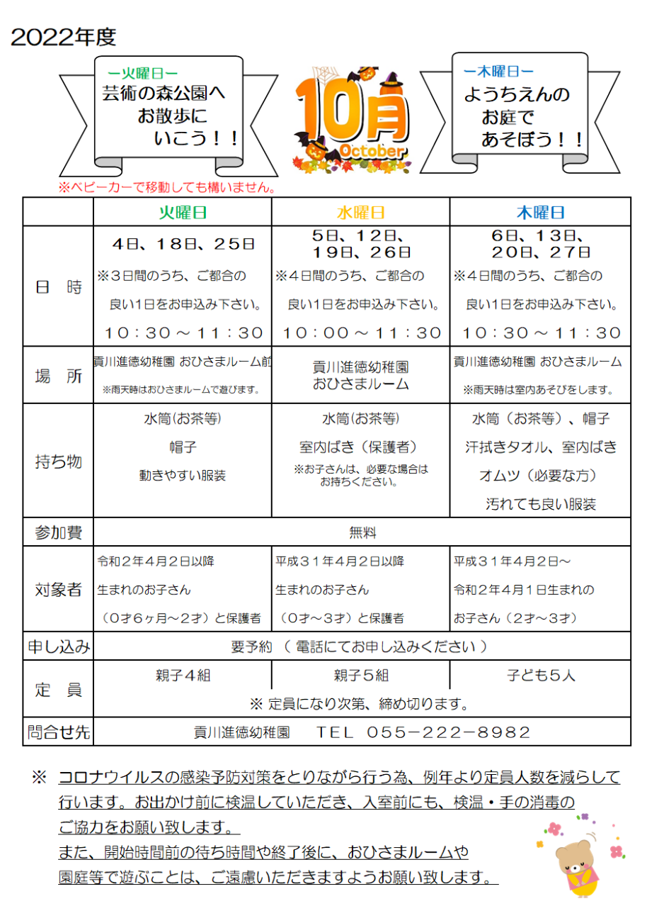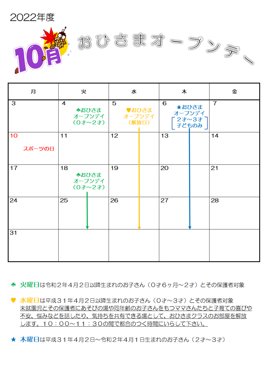 9月より木曜日(H31.4.2~R2.4.1の2~3才対象)は、お子さまのみの参加となります。