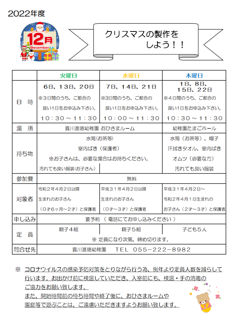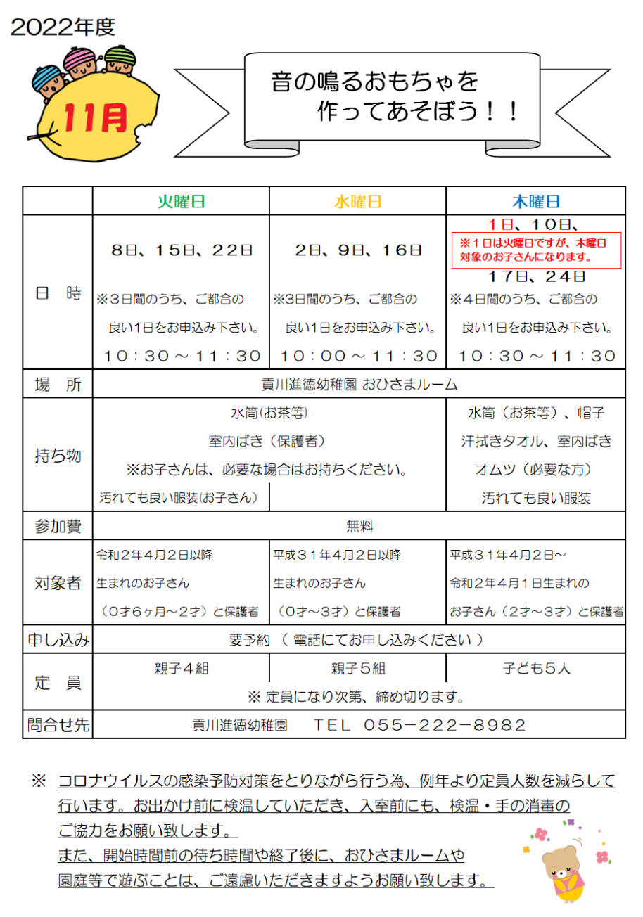 未就園のお子さまと保護者のみなさま、幼稚園で一緒にあそびましょう♪