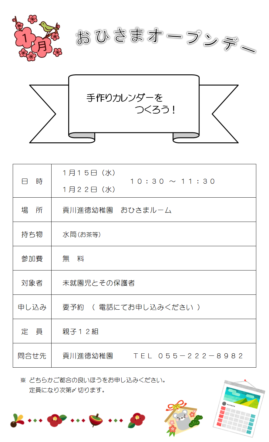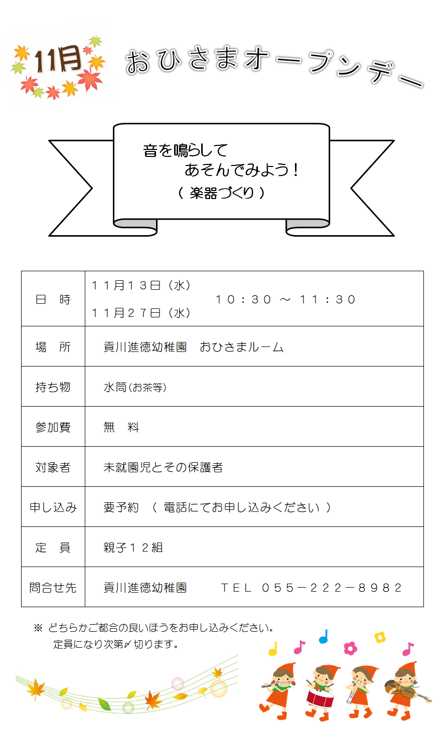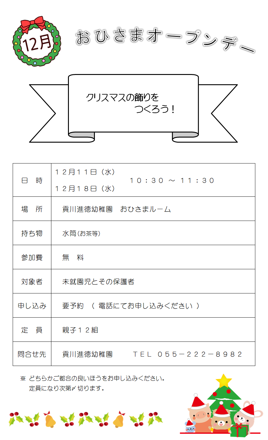未就園のお子さまと保護者のみなさま、幼稚園で一緒にあそびましょう♪