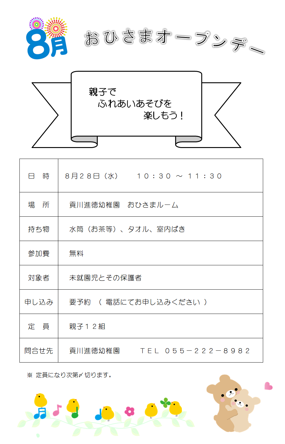 参加希望の方は、6月7日までに幼稚園へ直接または電話でお申し込みください。