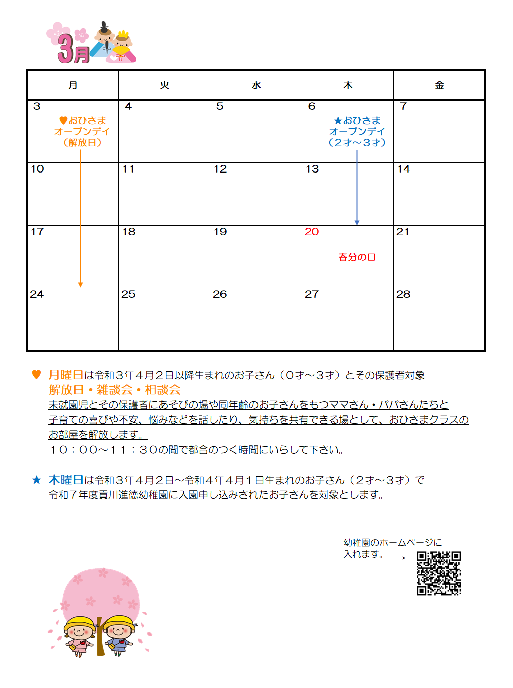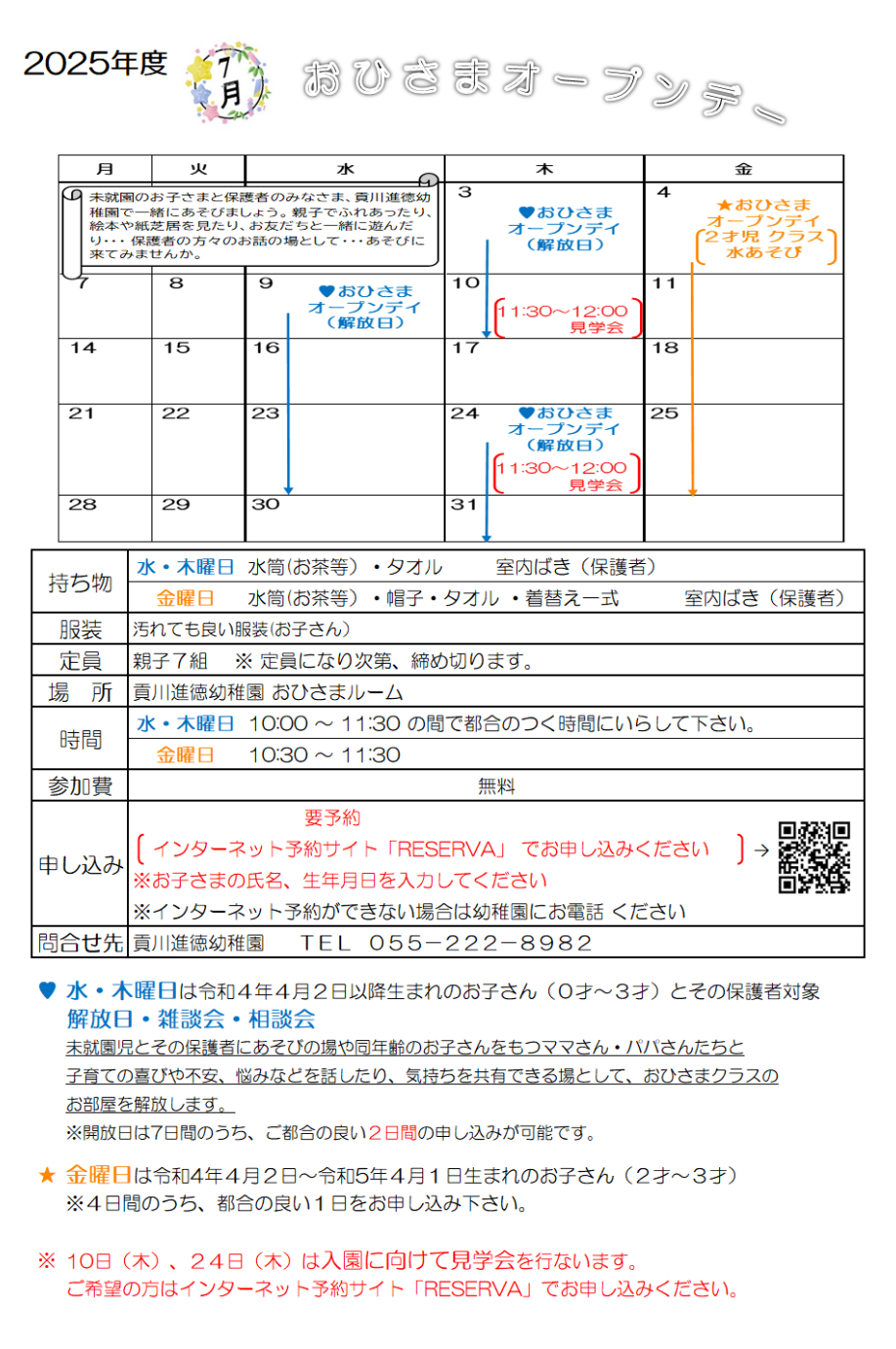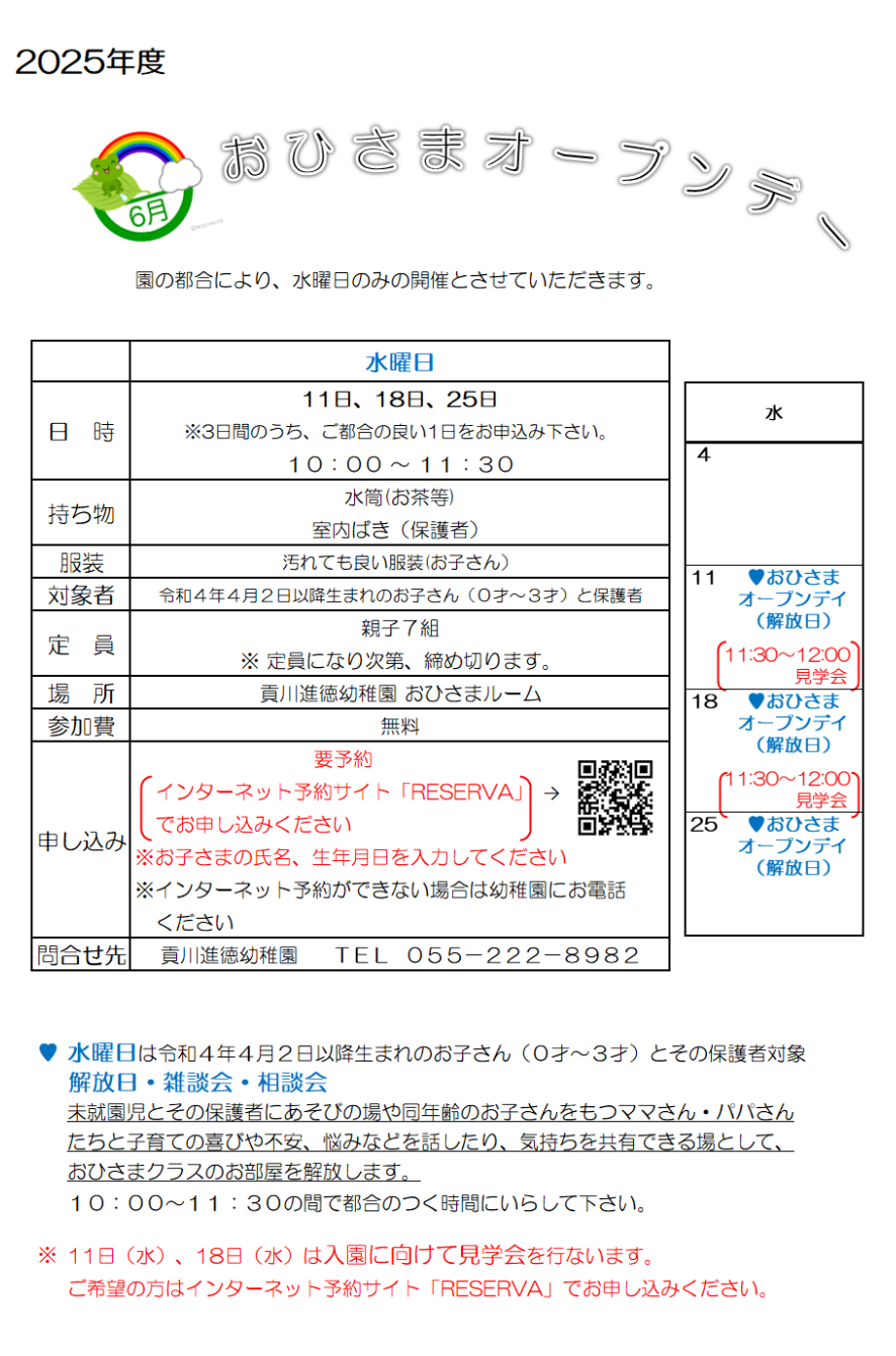 ※7月10日と24日は、令和8年度の入園に向けての見学会を行います。
