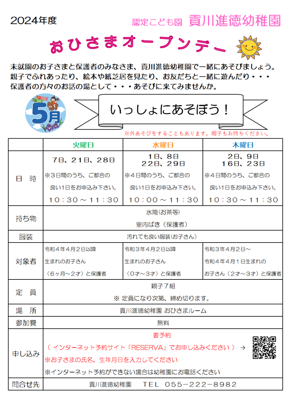 ※6月5日と19日は、令和7年度の入園に向けての見学会を行います。